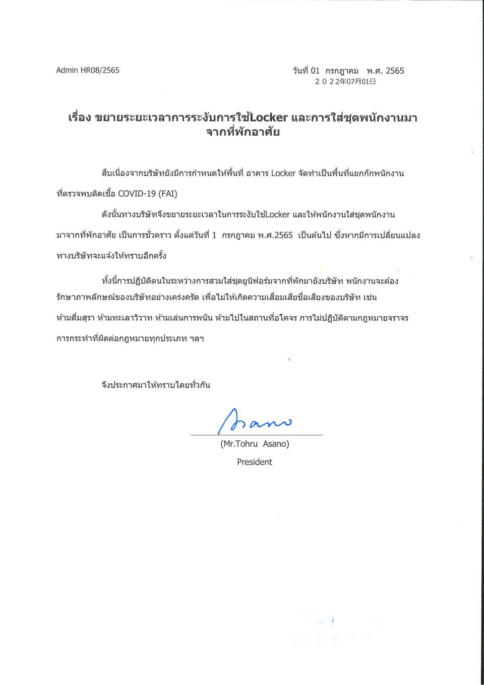 เรื่อง ขยายระยะเวลาการระงับการใช้Locker และการใส่ชุดพนักงานมาจากที่พักอาศัย HGM, ข่าวสารและกิจกรรม (News)By Narida02/07/2022Leave a comment