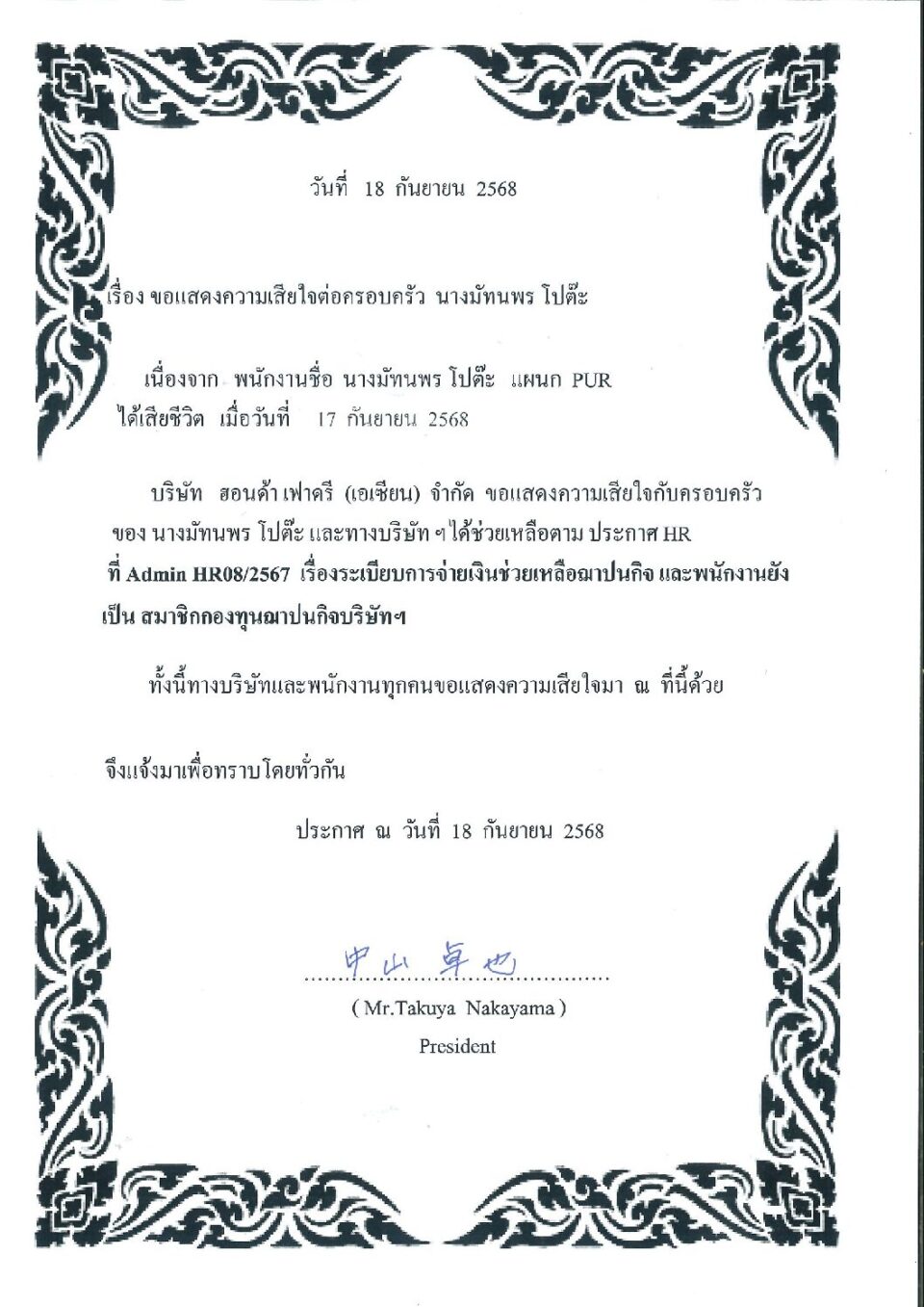 ขอแสดงความเสียใจต่อครอบครัว นางมัทนพร โปต๊ะ Admin, HGM, ข่าวสารและกิจกรรม (News)By Phonprapa18/09/2025Leave a comment
