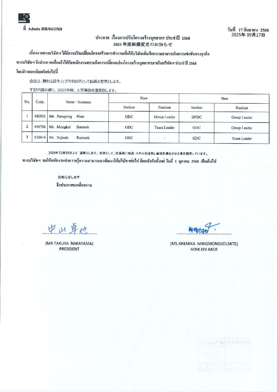 ประกาศ เรื่องการปรับโครงสร้างบุคลากร ประจำปี 2568 HGM, ข่าวสารและกิจกรรม (News)By Phonprapa24/09/2025Leave a commentYour list goes here!
