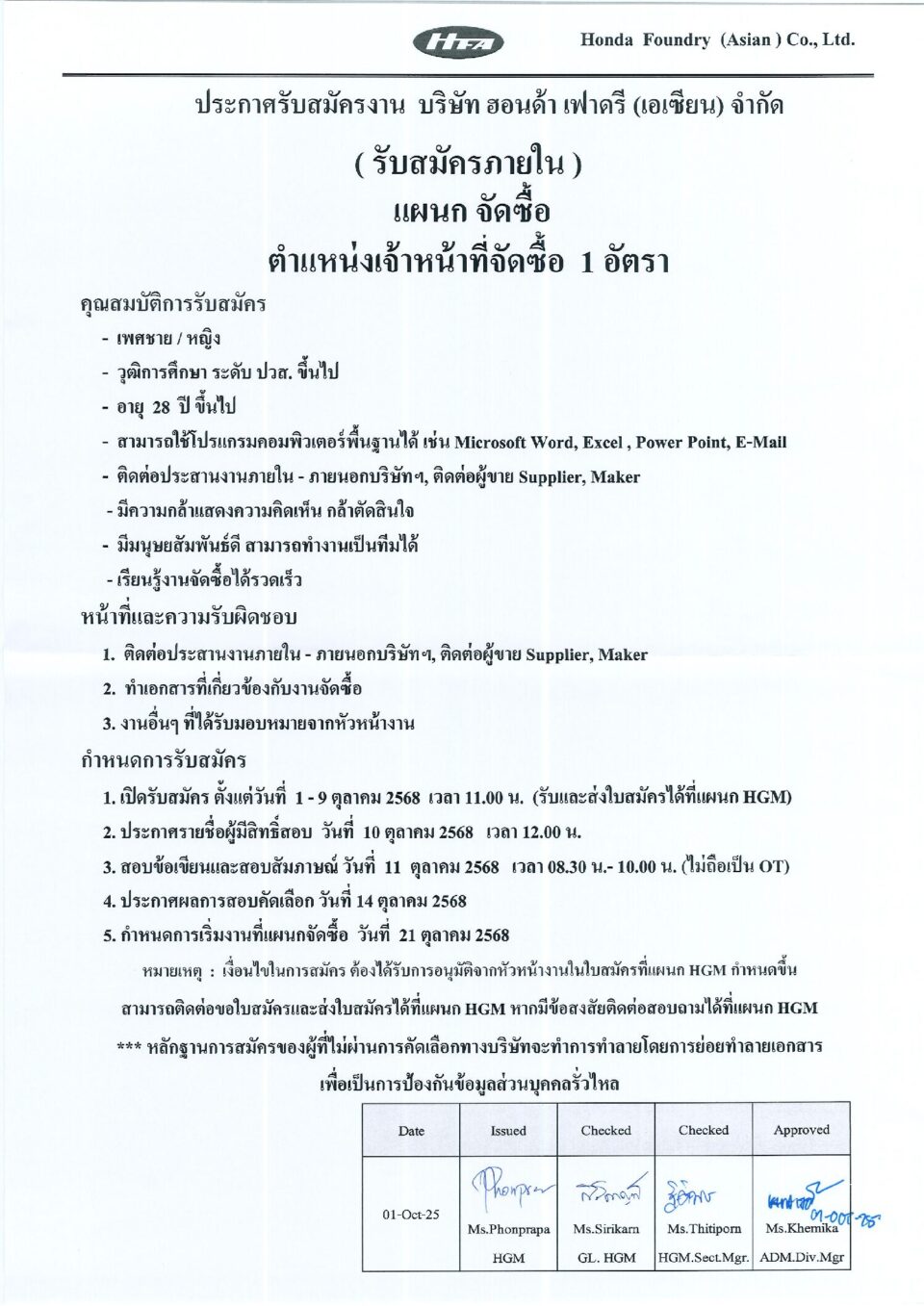 ประกาศรับสมัครงาน (รับสมัครภายใน) ตำแหน่ง เจ้าหน้าที่จัดซื้อ HGM, ข่าวสารและกิจกรรม (News)By Phonprapa01/10/2025Leave a comment