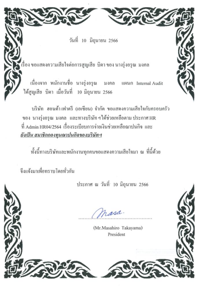 ขอแสดงความเสียใจต่อการสูญเสีย บิดา ของนางรุ่งอรุณ มงคล…