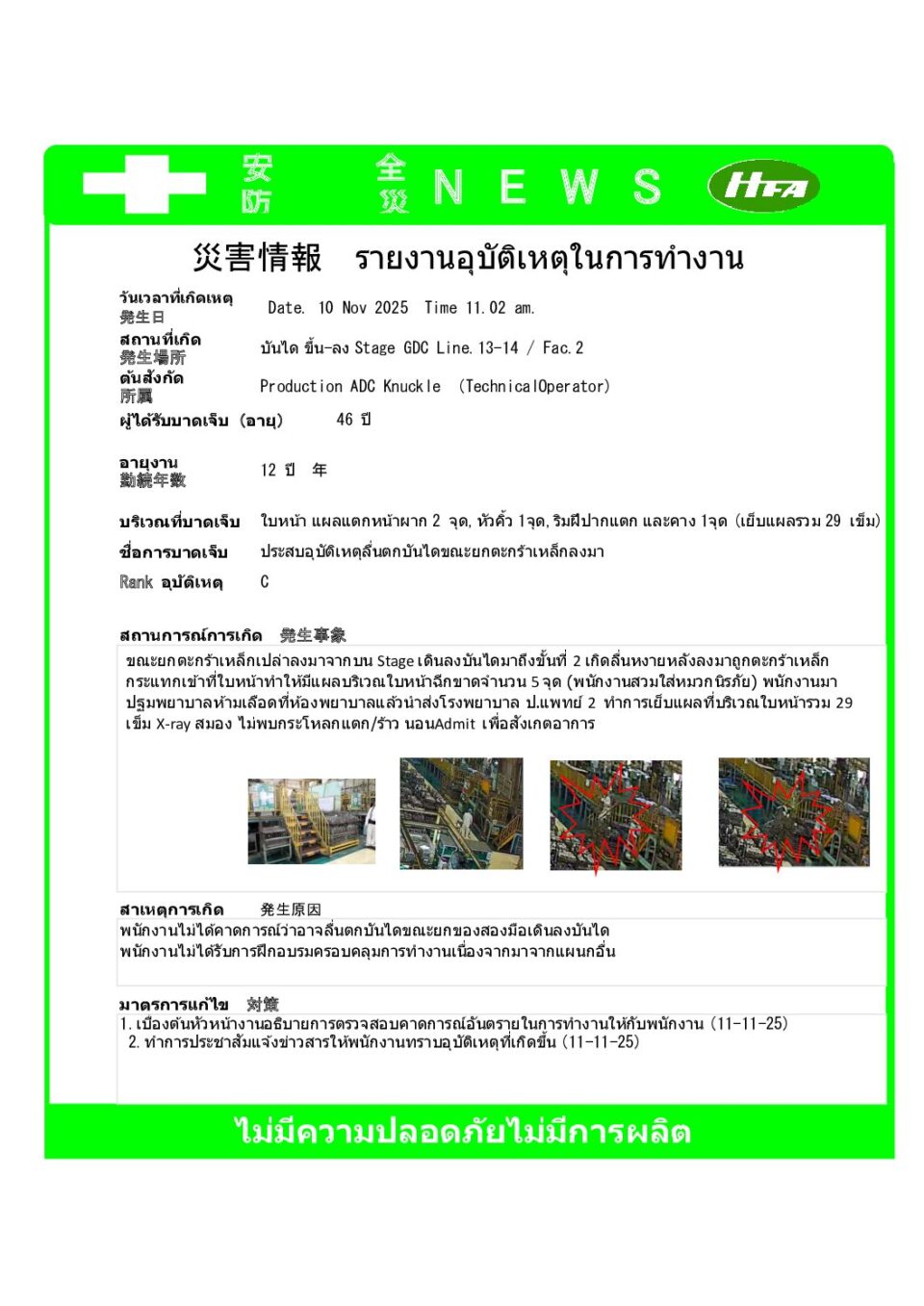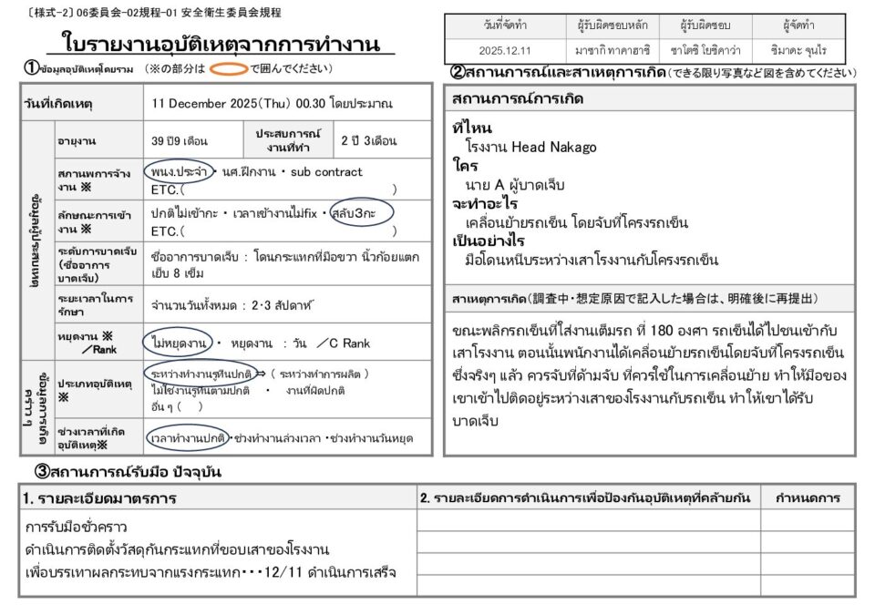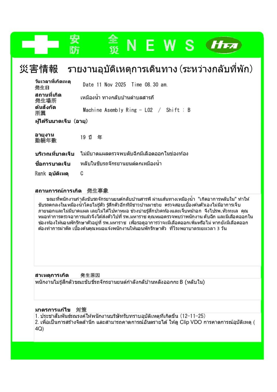 รายงานอุบัติเหตุระหว่างการเดินทางมาทำงาน