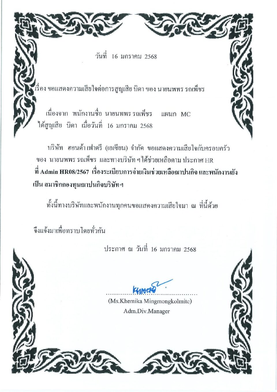 ขอแสดงความเสียใจต่อการสูญเสียบิดา นายนพพร รถเพ็ชร HGM, ข่าวสารและกิจกรรม (News)By Phonprapa17/01/2025Leave a comment