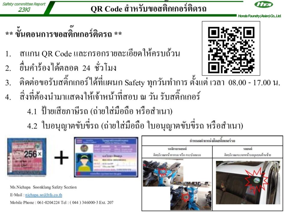 ประชาสัมพันธ์ขั้นตอนการขอสติ๊กเกอร์รถและกำหนดตำแหน่งติดสติ๊กเกอร์รถ Safety, ข่าวสารและกิจกรรม (News)By Nichapa Soonkang31/01/2025Leave a commentLoading… Taking too long? Reload document | Open in n…