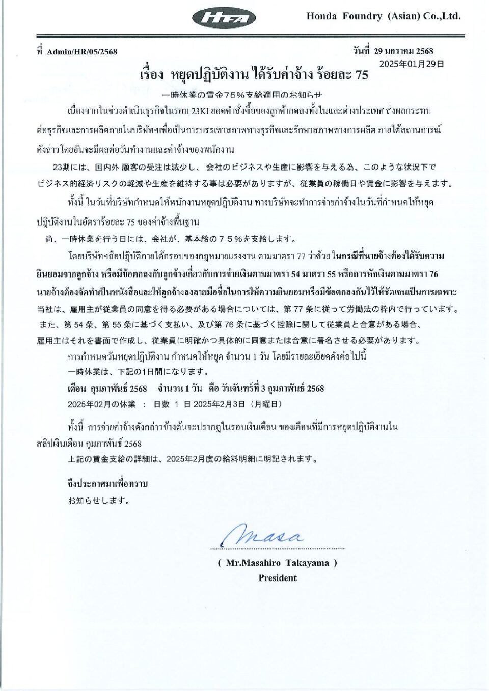 เรื่อง หยุดปฏิบัติงาน ได้รับค่าจ้าง ร้อยละ 75 HGM, ข่าวสารและกิจกรรม (News)By Phonprapa29/01/2025Leave a commentYour list goes here!