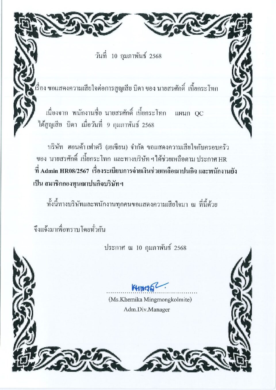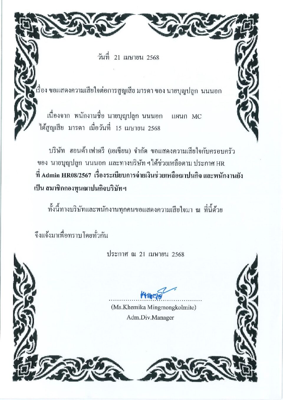 กองทุนสงเคราะห์ลูกจ้าง HGM, ข่าวสารและกิจกรรม (News)By Phonprapa06/05/2025Leave a comment-JPN-รายงานฝ่ายบริหาร-PR-พนักงาน-513052025-1.pdf Loadin…
