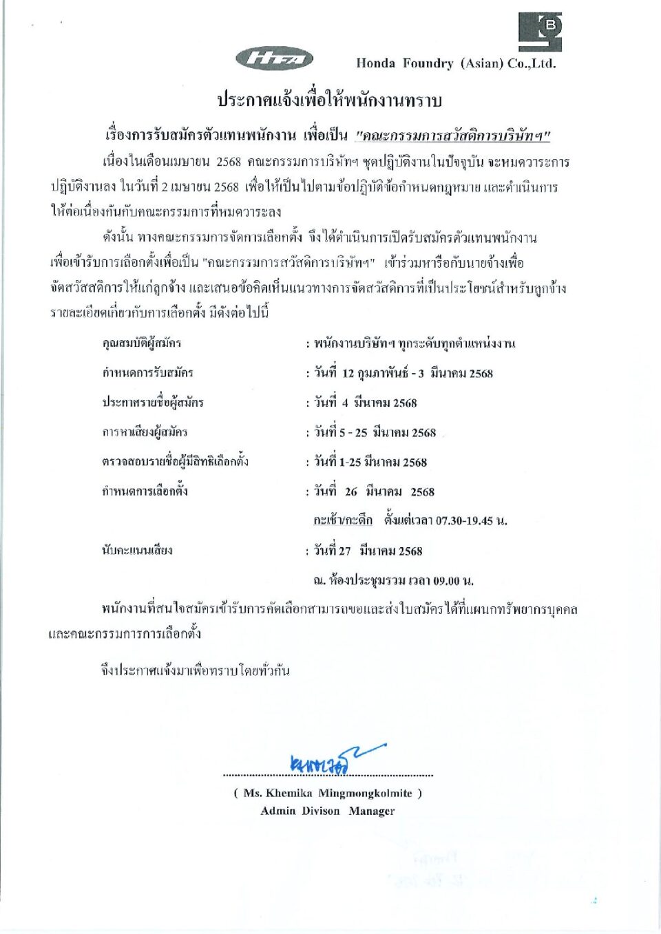 ประกาศการรับสมัครคณะกรรมการสวัสดิการบริษัท HGM, ข่าวสารและกิจกรรม (News)By Phonprapa14/02/2025Leave a comment