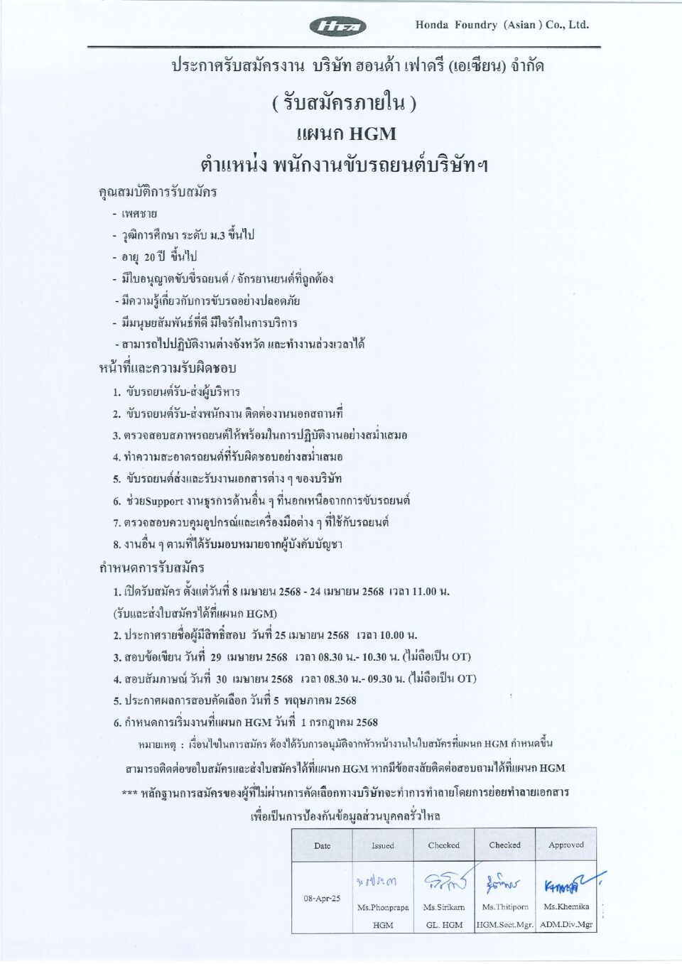 ประกาศรับสมัครงาน (รับสมัครภายใน) ตำแหน่ง พนักงานขับรถยนต์บริษัทฯ HGM, ข่าวสารและกิจกรรม (News)By Phonprapa08/04/2025Leave a commentYour list goes here!