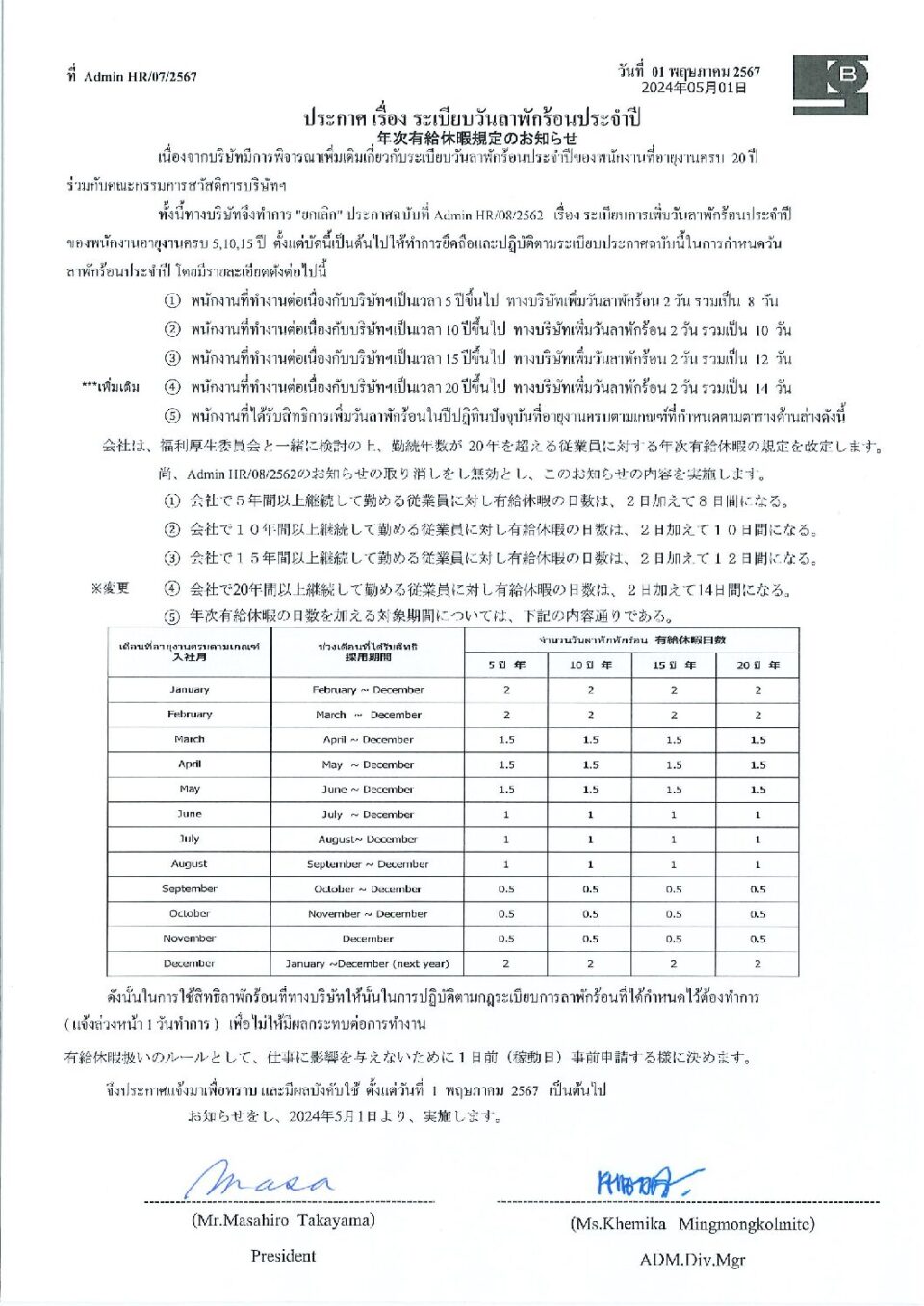 ประกาศ เรื่อง ระเบียบวันลาพักร้อนประจำปี HGM, ข่าวสารและกิจกรรม (News)By Phonprapa22/04/2024Leave a comment