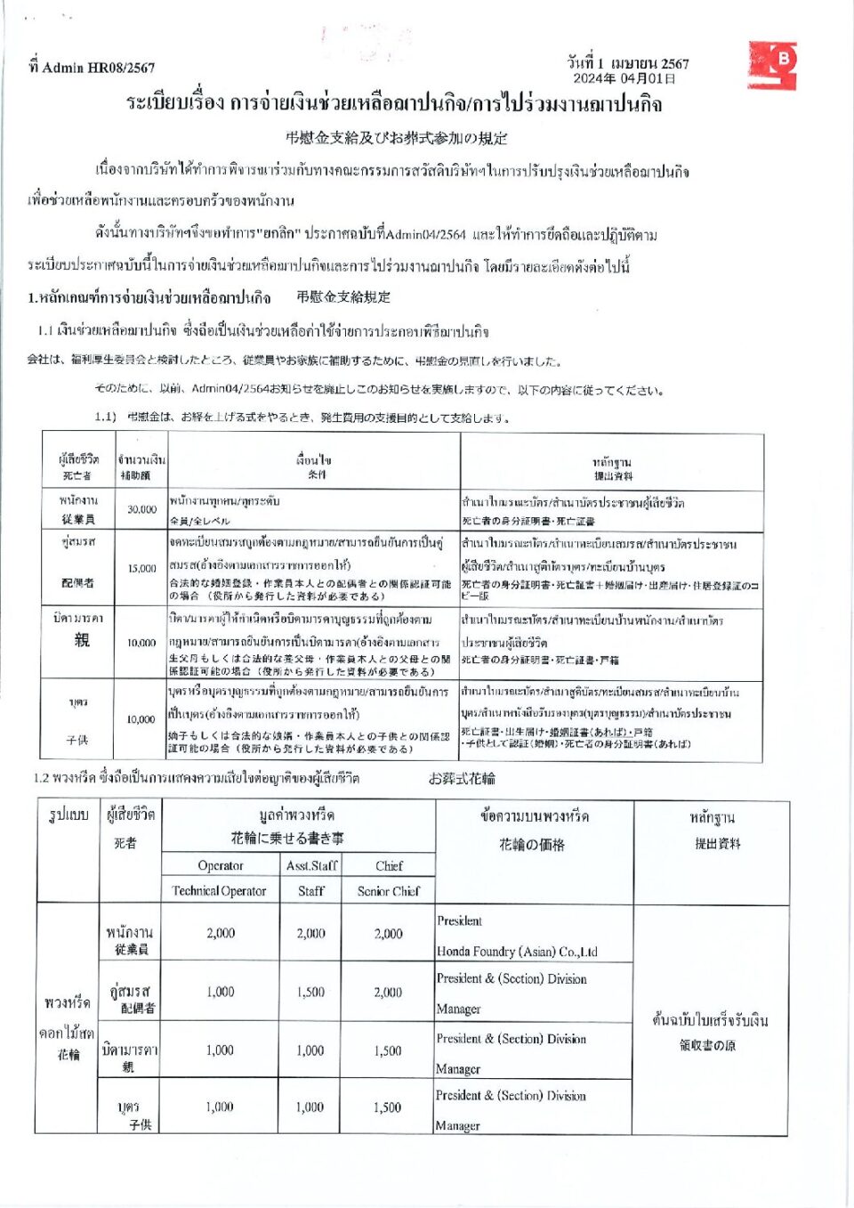 ระเบียบเรื่อง การจ่ายเงินช่วยเหลือฌาปนกิจ-การไปร่วมงานฌาปนกิจ HGM, ข่าวสารและกิจกรรม (News)By Phonprapa22/04/2024Leave a comment