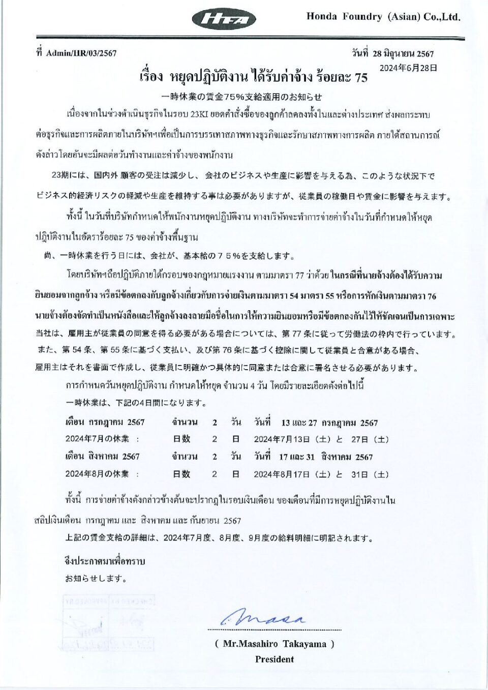 เรื่อง หยุดปฏิบัติงานได้รับค่าจ้าง ร้อยละ 75 HGM, ข่าวสารและกิจกรรม (News)By Phonprapa02/07/2024Leave a comment
