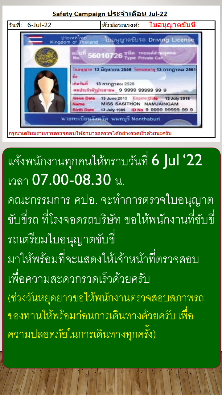 Close 2022-07-06 Safety Campaign ตรวจใบอนุญาตขับขี่รถ