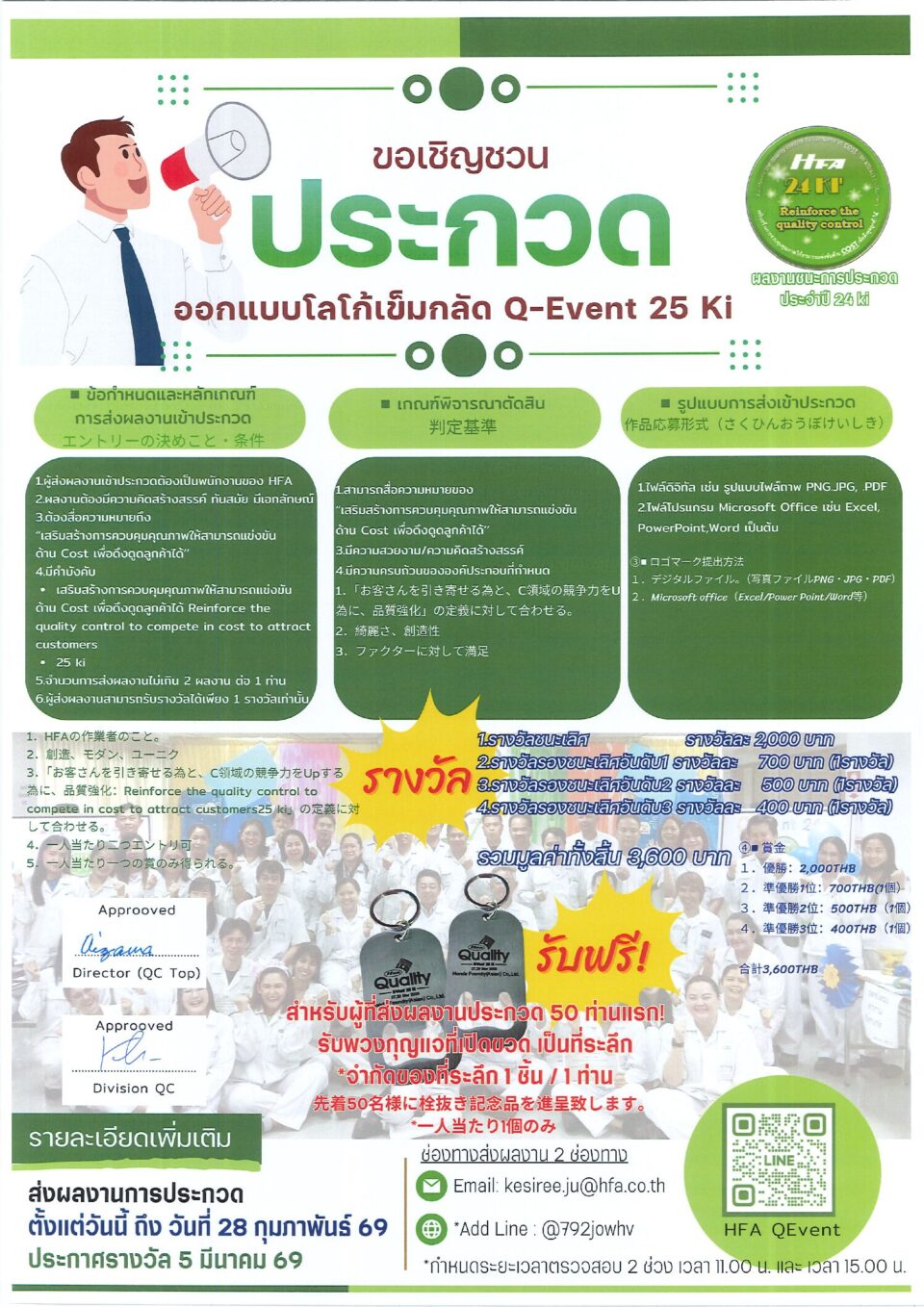 ขอเชิญชวนประกวดออกแบบโลโก้เข็มกลัด Q-Event 25 Ki QCBy Saisamorn18/02/2026Leave a commentLoading… Taking too long? Reload document | Open in n…
