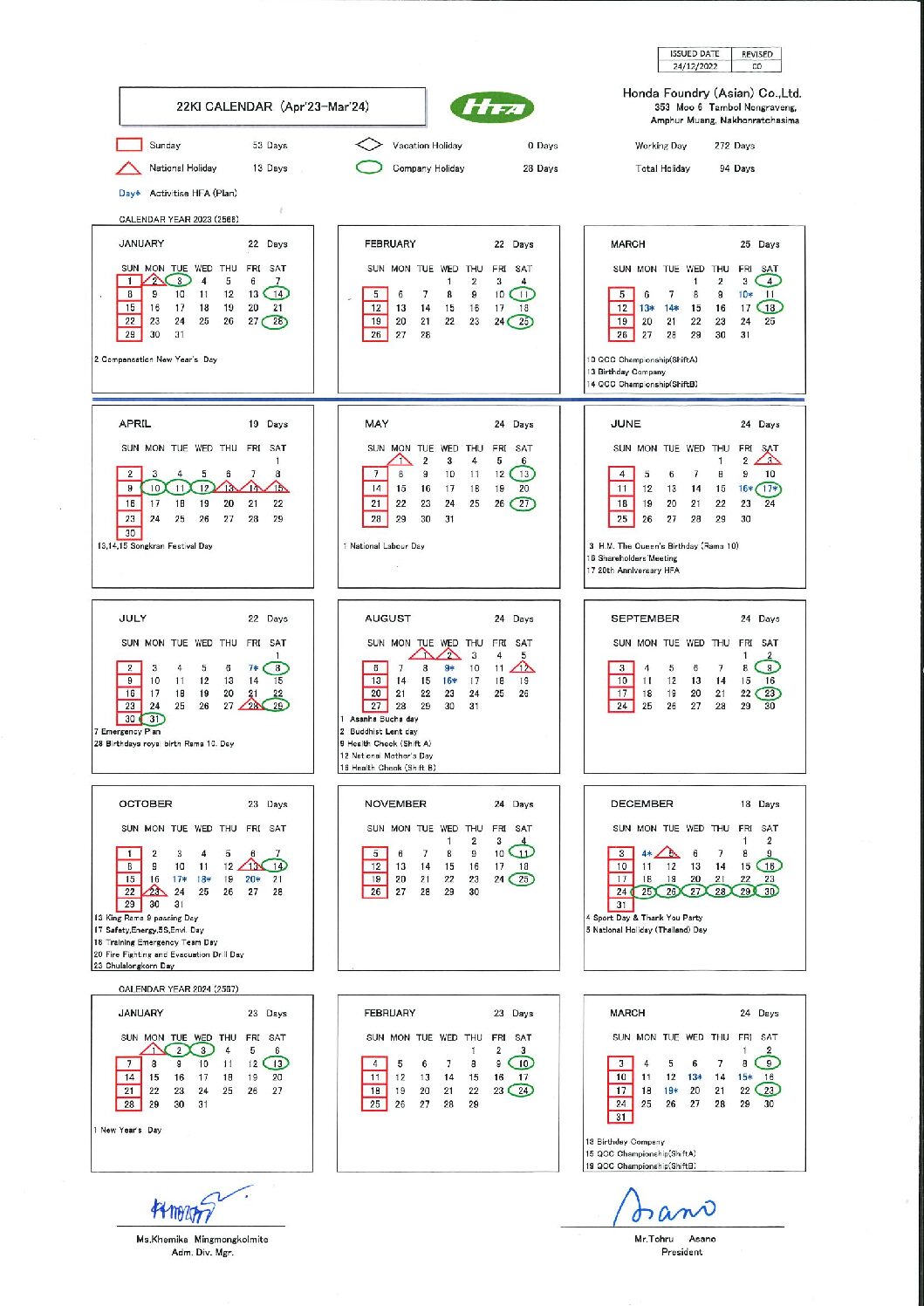 ธ.ค.242022HGMข่าวสารและกิจกรรม (News) Categories: HGM, ข่าวสารและกิจกรรม (News)By Narida24/12/2022 Author: Narida Post navigationPreviousPrevious post:Thank you Award 21KINextNext post:ปฎิทิน ปี 2023Related posts2026.04.03 ประชาสัมพันธ์กิจกรรมรับบริจาคโลหิต14/03/2026ประชาสัมพันธ์ประชาสัมพันธ์บริการให้คำปรึกษาสุขภาพทั่วไป06/03/2026Event Safety Committee Mar’2603/03/2026แจ้งเปลี่ยนแปลงห้องเบิกจ่ายอุปกรณ์ป้องกันอันตรายส่วนบุคคล (PPE) และ วันเบิก-จ่าย03/03/2026จดหมายข่าวด้านความปลอดภัยอาชีวอนามัย และสิ่งแวดล้อม ประจำเดือนมีนาคม 256903/03/2026ประชาสัมพันธ์ การใช้เหยี่ยวไล่นกภายในโรงงาน03/03/2026ขอแสดงความเสียใจต่อการสูญเสียมารดา นายเปี่ยมศักดิ์ นาคบุญเลิศ03/03/2026Open Canteen 09.02.202608/02/2026