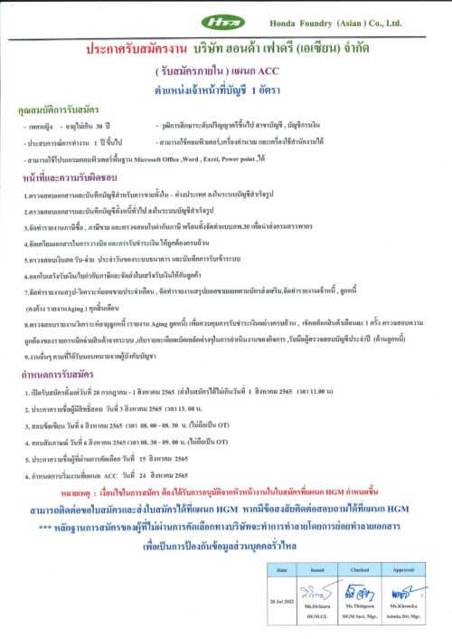 ก.ค.202022HGMข่าวสารและกิจกรรม (News) Categories: HGM, ข่าวสารและกิจกรรม (News)By Narida20/07/2022 Author: Narida Post navigationPreviousPrevious post:2022-07-06 Safety Campaign ตรวจใบอนุญาตขับขี่รถNextNext post:เรื่อง ตารางอัตราเงินสมทบประกันสังคม ปี 2565Related posts2026.04.03 ประชาสัมพันธ์กิจกรรมรับบริจาคโลหิต14/03/2026ประชาสัมพันธ์ประชาสัมพันธ์บริการให้คำปรึกษาสุขภาพทั่วไป06/03/2026Event Safety Committee Mar’2603/03/2026แจ้งเปลี่ยนแปลงห้องเบิกจ่ายอุปกรณ์ป้องกันอันตรายส่วนบุคคล (PPE) และ วันเบิก-จ่าย03/03/2026จดหมายข่าวด้านความปลอดภัยอาชีวอนามัย และสิ่งแวดล้อม ประจำเดือนมีนาคม 256903/03/2026ประชาสัมพันธ์ การใช้เหยี่ยวไล่นกภายในโรงงาน03/03/2026ขอแสดงความเสียใจต่อการสูญเสียมารดา นายเปี่ยมศักดิ์ นาคบุญเลิศ03/03/2026Open Canteen 09.02.202608/02/2026