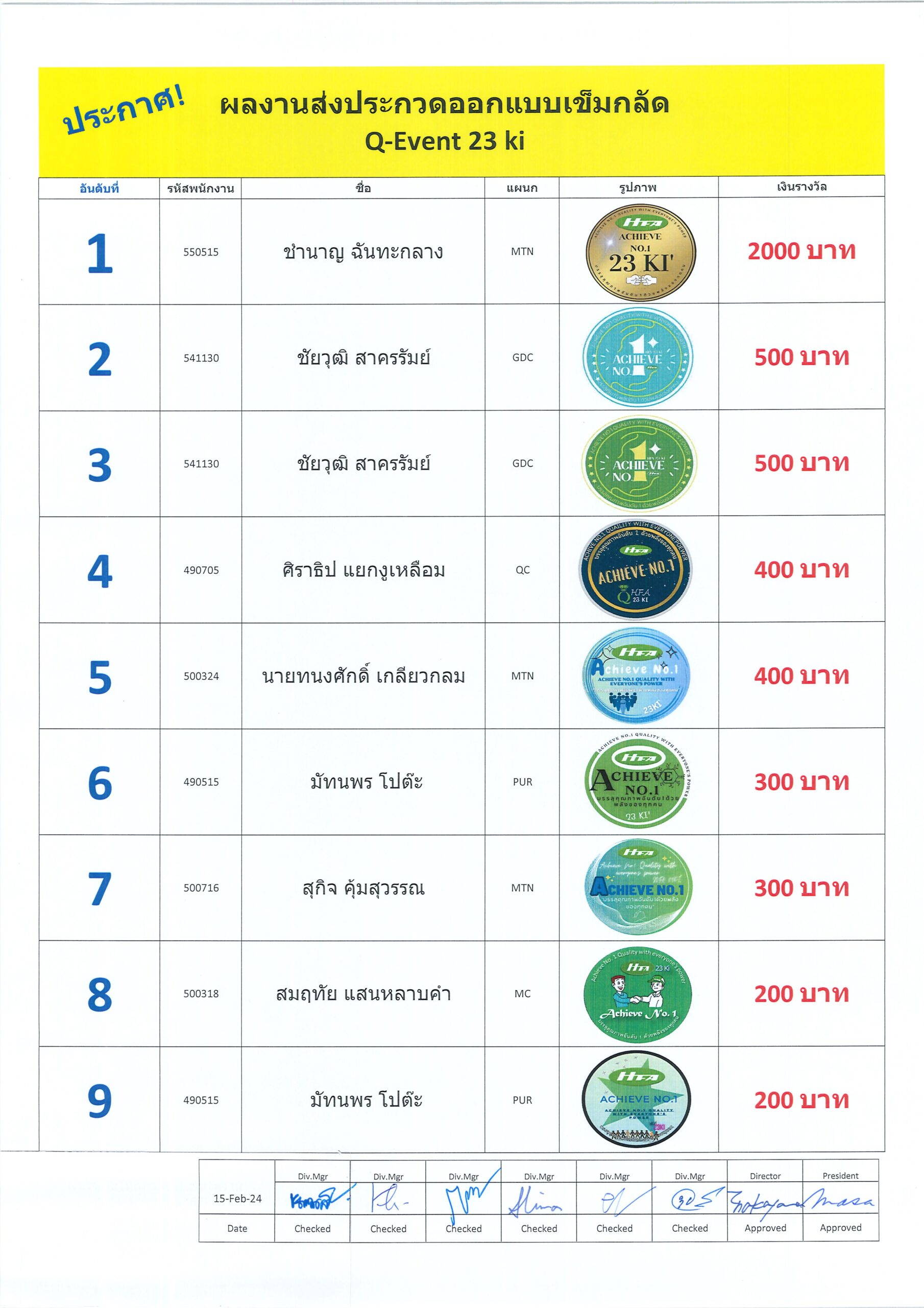ก.พ.162024QCข่าวสารและกิจกรรม (News) Categories: QC, ข่าวสารและกิจกรรม (News)By wolfverey16/02/2024 Author: wolfverey http://49.231.2.83 Post navigationPreviousPrevious post:ขอแสดงความเสียใจต่อการสูญเสีย บิดา นายสมนึก ปลอดกระโทกNextNext post:ท่องเที่ยวประจำปี 2024 นครนายกRelated posts2026.04.03 ประชาสัมพันธ์กิจกรรมรับบริจาคโลหิต14/03/2026ประชาสัมพันธ์ประชาสัมพันธ์บริการให้คำปรึกษาสุขภาพทั่วไป06/03/2026Event Safety Committee Mar’2603/03/2026แจ้งเปลี่ยนแปลงห้องเบิกจ่ายอุปกรณ์ป้องกันอันตรายส่วนบุคคล (PPE) และ วันเบิก-จ่าย03/03/2026จดหมายข่าวด้านความปลอดภัยอาชีวอนามัย และสิ่งแวดล้อม ประจำเดือนมีนาคม 256903/03/2026ประชาสัมพันธ์ การใช้เหยี่ยวไล่นกภายในโรงงาน03/03/2026ขอแสดงความเสียใจต่อการสูญเสียมารดา นายเปี่ยมศักดิ์ นาคบุญเลิศ03/03/2026ขอเชิญชวนประกวดออกแบบโลโก้เข็มกลัด Q-Event 25 Ki18/02/2026