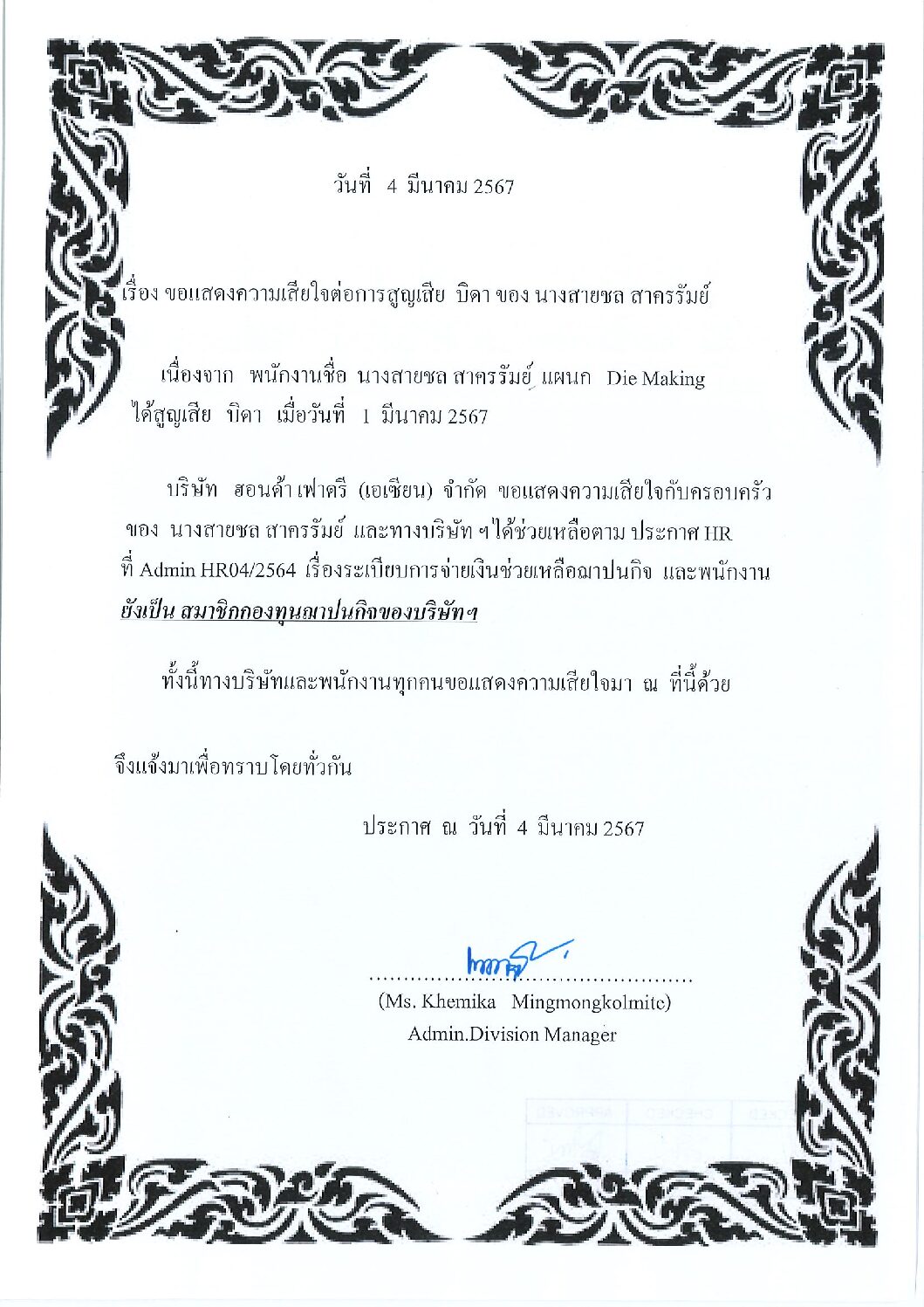 มี.ค.42024HGMข่าวสารและกิจกรรม (News) Categories: HGM, ข่าวสารและกิจกรรม (News)By Phonprapa04/03/2024 Author: Phonprapa Post navigationPreviousPrevious post:ขอแสดงความยินดีกับนักกีฬาฟุตบอล ได้รับรางวัลรองชนะเลิศอันดับ 1 ฟุตบอลโรงงานเมืองย่า Factory cup 2024NextNext post:ขอแสดงความเสียใจต่อการสูญเสียบิดา ของ นายธีรัฐพงศ์ ทิศกระโทกRelated posts2026.04.03 ประชาสัมพันธ์กิจกรรมรับบริจาคโลหิต14/03/2026ประชาสัมพันธ์ประชาสัมพันธ์บริการให้คำปรึกษาสุขภาพทั่วไป06/03/2026Event Safety Committee Mar’2603/03/2026แจ้งเปลี่ยนแปลงห้องเบิกจ่ายอุปกรณ์ป้องกันอันตรายส่วนบุคคล (PPE) และ วันเบิก-จ่าย03/03/2026จดหมายข่าวด้านความปลอดภัยอาชีวอนามัย และสิ่งแวดล้อม ประจำเดือนมีนาคม 256903/03/2026ประชาสัมพันธ์ การใช้เหยี่ยวไล่นกภายในโรงงาน03/03/2026ขอแสดงความเสียใจต่อการสูญเสียมารดา นายเปี่ยมศักดิ์ นาคบุญเลิศ03/03/2026Open Canteen 09.02.202608/02/2026