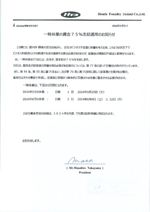 พ.ค.102024Uncategorized Category: UncategorizedBy Phonprapa10/05/2024 Author: Phonprapa Post navigationPreviousPrevious post:เรื่อง หยุดปฏิบัติงานได้รับค่าจ้าง ร้อยละ 75 (ภาษาไทย)NextNext post:ขอแสดงความเสียใจต่อการสูญเสียบิดา ของ นายอนุชิต วนวงษ์Related postsประสัมพันธ์กำหนดการวันครบรอบก่อตั้งบริษัท09/03/2026ขอแสดงความเสียใจต่อการสูญเสียมารดา นายวัฒนศักดิ์ เสนาไชย20/01/2026Sport day & Party 202512/12/2025ขอแสดงความเสียใจต่อการสูญเสีย บิดา นางสาวศิริพร เอียการนา12/12/2025Calendar 25KI(April 26 – March 27)10/12/2025เรื่อง หยุดปฏิบัติงาน ได้รับค่าจ้าง ร้อยละ 7501/12/2025ประกาศค่าอายุงาน 5,10,15,20 ปี03/11/2025พระพันปีหลวง27/10/2025