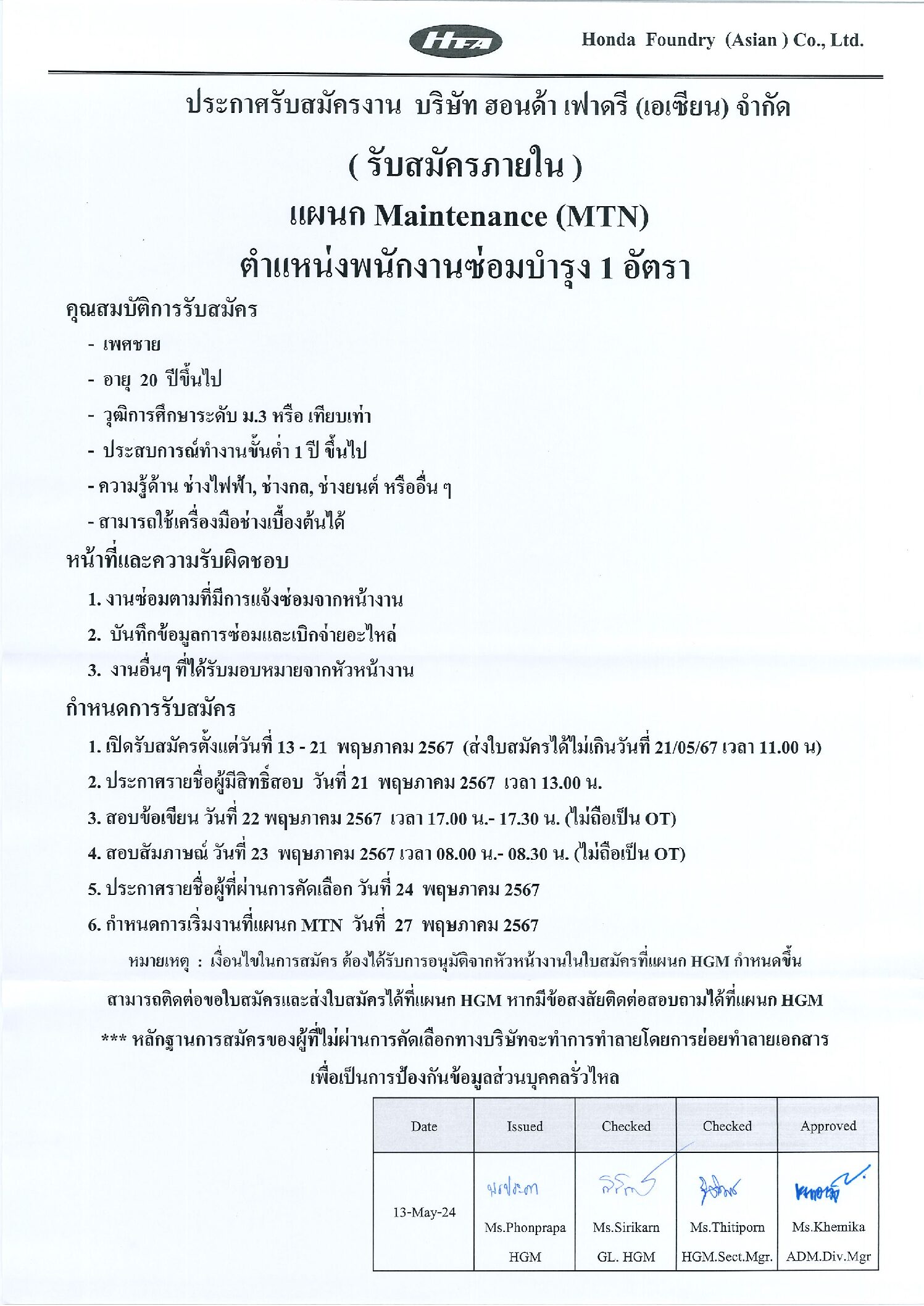 พ.ค.152024HGMข่าวสารและกิจกรรม (News) Categories: HGM, ข่าวสารและกิจกรรม (News)By Phonprapa15/05/2024 Author: Phonprapa Post navigationPreviousPrevious post:ขอแสดงความเสียใจต่อการสูญเสียบิดา ของ นายอนุชิต วนวงษ์NextNext post:ขอแสดงความเสียใจต่อการสูญเสียบิดาของ นายสุริยะ พาพลงามRelated posts2026.04.03 ประชาสัมพันธ์กิจกรรมรับบริจาคโลหิต14/03/2026ประชาสัมพันธ์ประชาสัมพันธ์บริการให้คำปรึกษาสุขภาพทั่วไป06/03/2026Event Safety Committee Mar’2603/03/2026แจ้งเปลี่ยนแปลงห้องเบิกจ่ายอุปกรณ์ป้องกันอันตรายส่วนบุคคล (PPE) และ วันเบิก-จ่าย03/03/2026จดหมายข่าวด้านความปลอดภัยอาชีวอนามัย และสิ่งแวดล้อม ประจำเดือนมีนาคม 256903/03/2026ประชาสัมพันธ์ การใช้เหยี่ยวไล่นกภายในโรงงาน03/03/2026ขอแสดงความเสียใจต่อการสูญเสียมารดา นายเปี่ยมศักดิ์ นาคบุญเลิศ03/03/2026Open Canteen 09.02.202608/02/2026