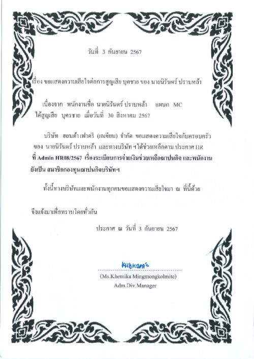 ก.ย.42024HGMข่าวสารและกิจกรรม (News) Categories: HGM, ข่าวสารและกิจกรรม (News)By Phonprapa04/09/2024 Author: Phonprapa Post navigationPreviousPrevious post:VDO HF Anniversary 60thNextNext post:ขอแสดงความเสียใจต่อการสูญเสียมารดา ของ นายนิรันด์ กันกระโทกRelated posts2026.04.03 ประชาสัมพันธ์กิจกรรมรับบริจาคโลหิต14/03/2026ประชาสัมพันธ์ประชาสัมพันธ์บริการให้คำปรึกษาสุขภาพทั่วไป06/03/2026Event Safety Committee Mar’2603/03/2026แจ้งเปลี่ยนแปลงห้องเบิกจ่ายอุปกรณ์ป้องกันอันตรายส่วนบุคคล (PPE) และ วันเบิก-จ่าย03/03/2026จดหมายข่าวด้านความปลอดภัยอาชีวอนามัย และสิ่งแวดล้อม ประจำเดือนมีนาคม 256903/03/2026ประชาสัมพันธ์ การใช้เหยี่ยวไล่นกภายในโรงงาน03/03/2026ขอแสดงความเสียใจต่อการสูญเสียมารดา นายเปี่ยมศักดิ์ นาคบุญเลิศ03/03/2026Open Canteen 09.02.202608/02/2026