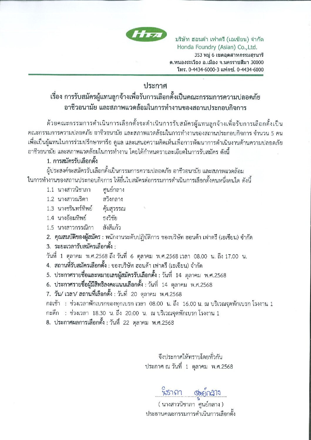ต.ค.22025Safetyข่าวสารและกิจกรรม (News) Loading... Taking too long? Reload document | Open in new tab Categories: Safety, ข่าวสารและกิจกรรม (News)By Nichapa Soonkang02/10/2025 Author: Nichapa Soonkang Post navigationPreviousPrevious post:ประกาศ เรื่อง แต่งตั้งคณะกรรมการดำเนินการเลือกตั้ง คปอ. ปี 2568NextNext post:ประกาศ การเลือกตั้งคณะกรรมการสวัสดิการในสถานประกอบกิจการRelated posts2026.04.03 ประชาสัมพันธ์กิจกรรมรับบริจาคโลหิต14/03/2026ประชาสัมพันธ์ประชาสัมพันธ์บริการให้คำปรึกษาสุขภาพทั่วไป06/03/2026Event Safety Committee Mar’2603/03/2026แจ้งเปลี่ยนแปลงห้องเบิกจ่ายอุปกรณ์ป้องกันอันตรายส่วนบุคคล (PPE) และ วันเบิก-จ่าย03/03/2026จดหมายข่าวด้านความปลอดภัยอาชีวอนามัย และสิ่งแวดล้อม ประจำเดือนมีนาคม 256903/03/2026ประชาสัมพันธ์ การใช้เหยี่ยวไล่นกภายในโรงงาน03/03/2026ขอแสดงความเสียใจต่อการสูญเสียมารดา นายเปี่ยมศักดิ์ นาคบุญเลิศ03/03/2026Open Canteen 09.02.202608/02/2026