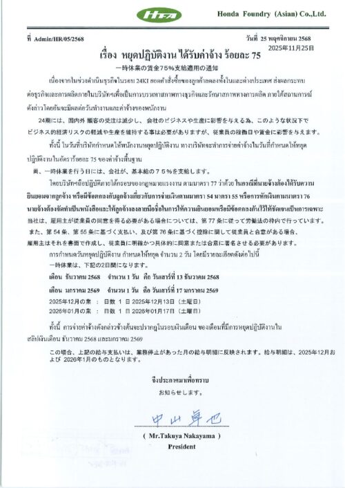 ธ.ค.12025Uncategorized Your list goes here! Category: UncategorizedBy Phonprapa01/12/2025 Author: Phonprapa Post navigationPreviousPrevious post:คณะทำงานสนับสนุนงานความปลอดภัยอาชีวอนามัย และสภาพแวดล้อมในการทำงานNextNext post:ขอแสดงความเสียใจต่อการสูญเสีย มารดา นายวีระ กมขุนทดRelated postsประสัมพันธ์กำหนดการวันครบรอบก่อตั้งบริษัท09/03/2026ขอแสดงความเสียใจต่อการสูญเสียมารดา นายวัฒนศักดิ์ เสนาไชย20/01/2026Sport day & Party 202512/12/2025ขอแสดงความเสียใจต่อการสูญเสีย บิดา นางสาวศิริพร เอียการนา12/12/2025Calendar 25KI(April 26 – March 27)10/12/2025ประกาศค่าอายุงาน 5,10,15,20 ปี03/11/2025พระพันปีหลวง27/10/2025เชิญชวนพนักงานลงทะเบียนเข้าร่วมกิจกรรม HFA QCC 2026/24KI13/09/2025